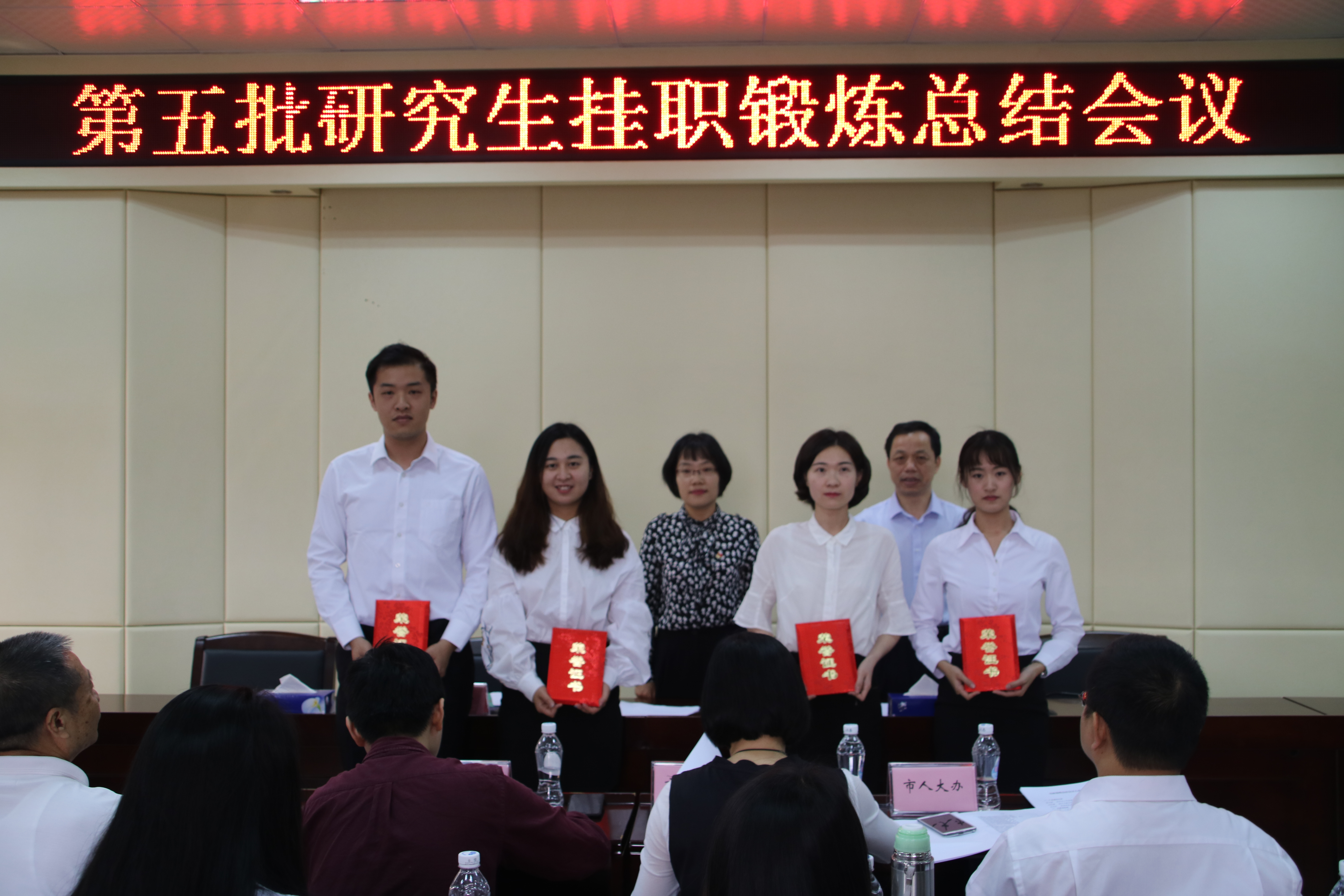 会议最后对挂职锻炼先进个人作了表彰。张慧静宣读了《关于表彰伟德国际1946和中共湛江市委组织部合作开展的第五批挂职锻炼研究生先进个人的通知》,陈汉能、张慧静共同为获得表彰的何梦羽、张晓沛、卢玥、吉伟伦4名同学颁发“挂职锻炼先进个人”荣誉证书。