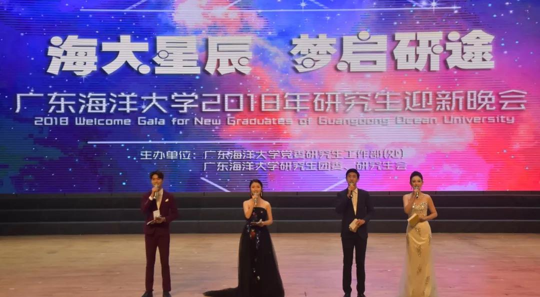 11月9日晚,以“海大星辰,梦启研途”为主题的我校2018年研究生迎新晚会在中歌艺术学院实验剧场隆重举行。湛江市文广新局原副局长周崇练、湛江市麻章区文化馆馆长陈鸣鸿、校组织部部长林宇、校学工部部长李育芳、校研工部副部长陈汉能、研究生处副处长周昌仕、海洋与气象学院副院长谢玲玲、马克思主义学院副院长任念文、电子与信息工程学院副院长付东洋应邀莅临晚会现场,研究生处全体老师、各学院研究生辅导员以及前来我校出席学术论坛的中国科学院海洋研究所、暨南大学、上海海洋大学、华南师范大学、云南农业大学、福建农林大学、集美大学、中国热科院热带生物技术研究所、广东医科大学等兄弟院校研究生和我校博士、硕士研究生出席了晚会。本次晚会由校党委研究生工作部(处)和研究生团委、研究生会联合主办。
