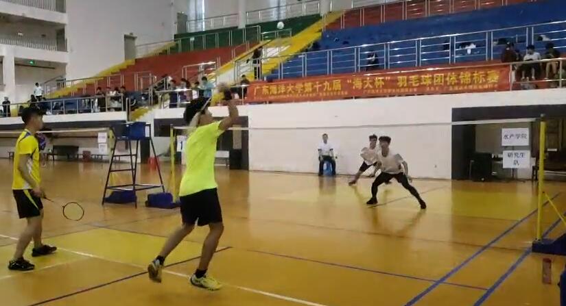 19日下午,研究生队与水产学院羽毛球队首先展开角逐,首先进行了男子单打的比赛,首局双方注意力都比较集中,每分必争,比分交替上升,在20:18落后两个局点的情况下,研究生队男单选手李自超敢抢敢拼,连追两分, 20:20平,但关键时刻,对方也不手软,依靠连续的杀球以22:20的比分拿下首局。在先丢一局的情况下,李自超凭借良好的意志品质和战术调整,通过网前抢搓和网前平推直线,以21:17的比分拿下第二局,将大比分追成1:1平,最终在决胜局中,受限于先前巨大的体力消耗,李自超在7:7后专注度开始下降,无谓失误增多,最终以大比分1:2输掉比赛。女子单打比赛中,研究生队女单选手罗艳媚以绝对优势主导了比赛,连续两个21:13的比分轻松拿下比赛。男双比赛中,研究生队赵一、陈墅鑫技术状态良好,通过平推球和发接发环节一路压制对手,以21:10,21:17两局轻松拿下比赛。随后进行的女双比赛和混双比赛中,我方队员展现了良好的竞技状态,由于技术和体能的差距,最终惜败对手,最终五个单项以2:3惜败对手。