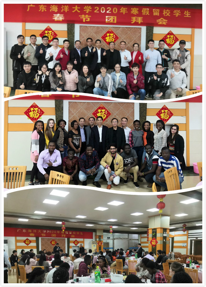 辞旧岁,迎新春。1月22日上午,我校在湖光校区第三饭堂三楼举行2020年寒假留校学生春节团拜会。受学校党委书记曹俊明、校长潘新祥的委托,学校党委副书记林晓敏出席会议。研究生院院长简纪常、研工部正处级辅导员兼副部长陈汉能、国际交流与合作处代理处长张建华、学工部副部长黄晋、后勤集团总经理龙俊、副总经理曾昭茂、相关学院辅导员,学工部、研究生院等部门干部老师与60多名寒假留校的国内研究生、留学研究生和本科生欢聚一堂,共迎鼠年新春佳节。团拜会由简纪常主持。