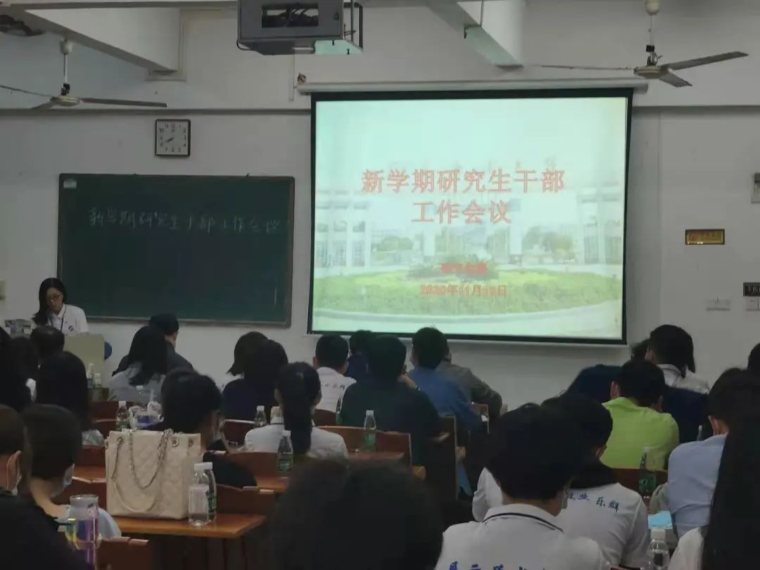11月10日晚,我校在湖光校区第二教学楼B1-201教室举行新学期研究生干部会议。党委研究生工作部副部长陈汉能,研究生院党政办主任陈淦添,招生与就业科科长赵裕彬,研究生辅导员龙志军、余芬,校研究生团委、研究生会、《海大研究生》编辑部以及研究生新媒体中心等研究生团学组织学生干部、各研究生新生班班长、团支书以及各研究生培养学院研究生党支部委员等学生干部参加会议。