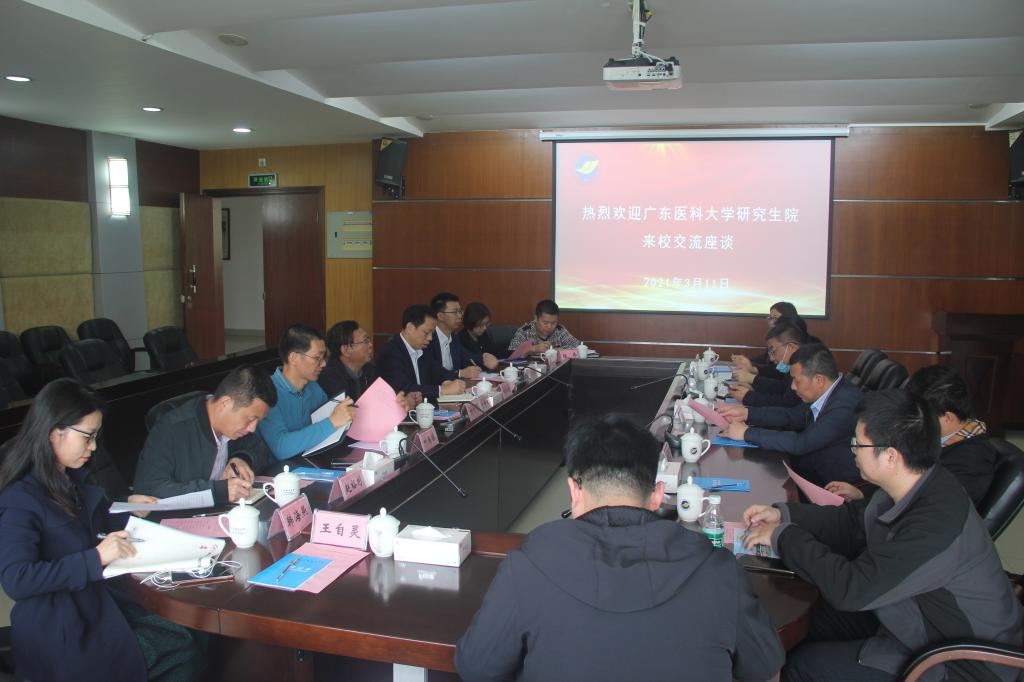 会上,双方介绍了本校研究生教育的办学规模、招生、培养、导师队伍建设、学位点建设、研究生日常管理、管理机构设置等方面基本情况以及近期开展相关工作的积极探索及成效。简纪常分享了我校近年来开展硕博连读、本硕博连读、博士申请考核制等招生改革制度的实施情况以及经验做法,同时介绍了我校去年召开首次研究生教育会会议的情况、研究生教育管理制度体系建设情况、阳江校区建设情况。唐焕文分享了广东医科大学湛江校区、东莞校区及各附属医院联动在联合培养基地建设、学位硕士与专业硕士教育、跨校区管理的经验和做法。双方均表示,通过本次交流搭建了很好沟通交流平台,进一步加深了对两校之间研究生教育的了解,今后双方将更加密切联系,互通有无,共同促进研究生教育高质量发展。