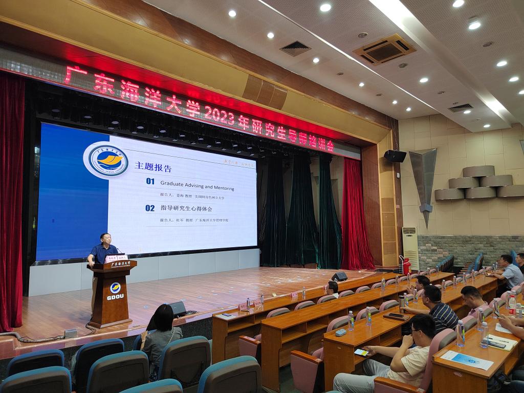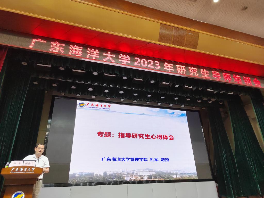 我校管理学院副院长(主持工作)杜军教授以“指导研究生心得体会”为题,从提高研究生导师自身综合素养出发,介绍针对不同类型研究生如何做好学习及学术训练规划,凭借自身多年指导经验,总结研究生教育应做到“五学会、八希望、三颗心”。