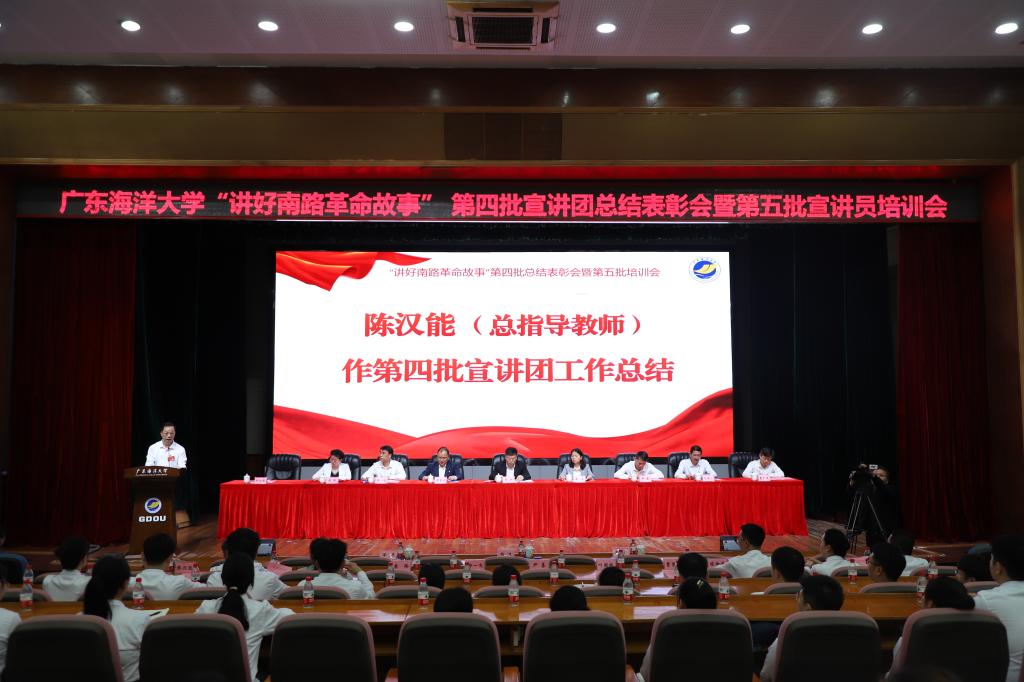 为深入学习贯彻2025年全国两会精神,引导广大青年学生坚定理想信念、传承红色基因,有效推进湛江市大中小学思政教育一体化建设,3月14日,伟德国际1946在湖光校区广学楼多功能厅召开“讲好南路革命故事”第四批宣讲团总结表彰会暨第五批宣讲员培训会,学校党委书记杨洲、副书记谭平、党委常委、副校长周昌仕出席会议,校党政办、宣传部、学生工作部、研究生院、团委、马克思主义学院等单位部门负责人以及全体骨干教员、宣讲员出席会议。研究生院院长叶国栋和宣传部副部长陈淦添分别主持第一阶段和第二阶段会议。