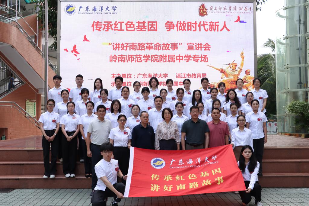 “讲好南路革命故事”宣讲团已是自活动开展以来第三次走进岭南师范学院附属中学,宣讲活动再次赢得师生们的热烈反响与一致好评。同学们通过这次宣讲,对南路革命历史有了更深刻的理解,也更加珍惜今天来之不易的幸福生活,他们纷纷表示将以革命先辈为榜样,努力学习,传承和弘扬红色基因,争做新时代的好少年。未来,“讲好南路革命故事” 宣讲团将继续深入大中小学校,开展形式多样的宣讲活动,打造 “行走的红色课堂”,让更多的青少年了解南路革命历史,厚植家国情怀,为中华民族伟大复兴贡献自己的力量。