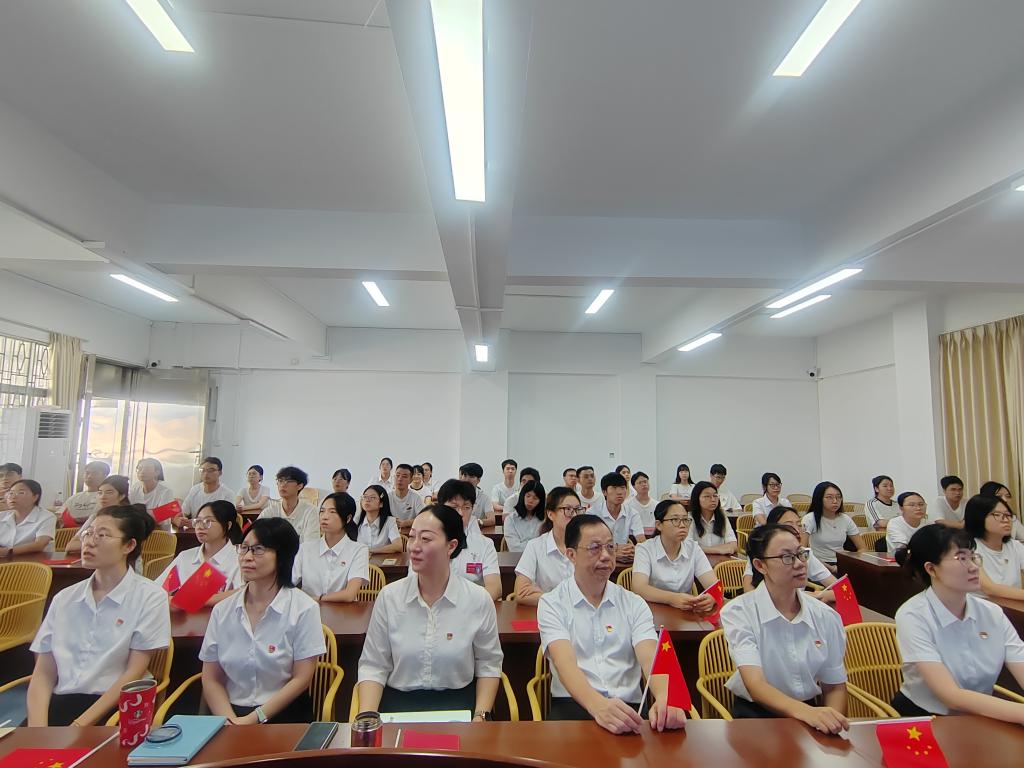 为深入推进爱国主义教育,传承红色基因,9月3日上午,研究生院党支部组织全体教师与"讲好南路革命故事"宣讲团成员共70余人,在广学楼1005教室集中收看了纪念中国人民抗日战争暨世界反法西斯战争胜利80周年大会实况直播。