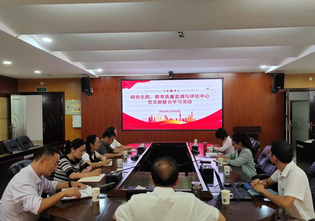 为深入学习贯彻党的二十届四中全会精神,准确把握全会精神核心要义与“十五五”规划战略部署,夯实理论基础,11月10日上午,研究生院、教育质量监测与评估中心两党支部在湖光校区行政楼四楼会议室共同开展党建联建专题学习活动。学校党委常委、副校长周昌仕主持活动,两个党支部全体党员参加学习。